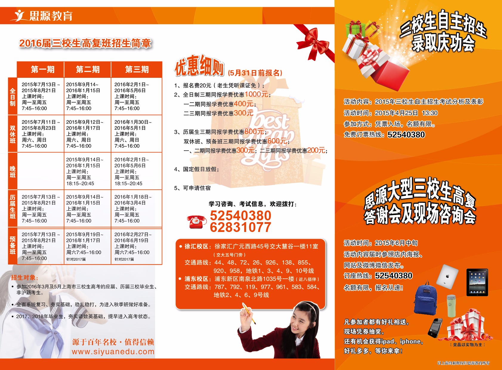 思源教育(原上海交大思源进修学院,简称思源教育)成立于1996年,自建校以来,秉承交大校训,依托名校师资,提供专业的托班辅导、青少年英语辅导、小学辅导、初中辅导、高中辅导、高考高复、三校生高复、艺考生文化课等,学生遍及全市各区,至今已帮助六万多余名学子取得优异成绩,成功考入理想的各级院校!20余年来思源已成为“中考教学研究中心”、“中学个性化学习教育基地”、“快速学习法”实验学校。