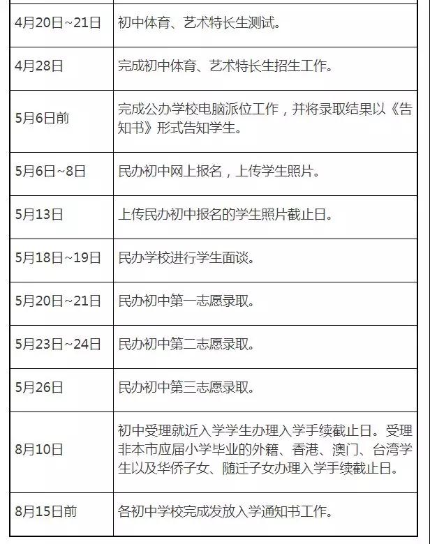 ㈢ 2019年民办初中实行网上报名。报名就读民办初中的学生,于5月6日~5月8日,在“上海市义务教育入学报名系统”填报志愿。每个学生限填报3所民办初中。报名成功后,家长必须于5月13日前在“上海市义务教育入学报名系统”的“民办报名学生照片上传”栏目中按规定要求上传学生本人照片,未上传照片的学生将不能参加民办学校面谈。民办初中面谈时,拒收学生所提供的奥数成绩、各类竞赛获奖证书、各类等级考试证书、各种特制的学生个人简历等材料。