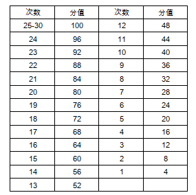 (二)女生部分项目考试成绩评定