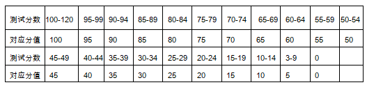 (一)男生部分项目考试成绩评定