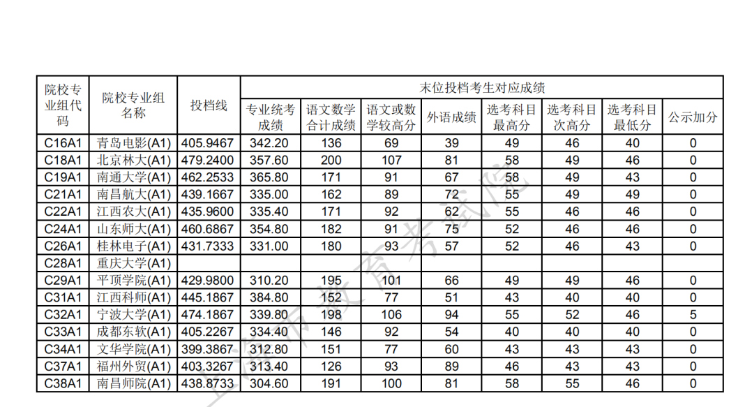 1.本科艺术甲批次平行段院校专业组投档分数线(美术与设计学类)