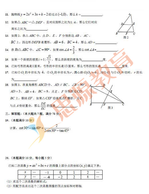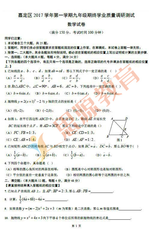 2018嘉定上海一模考开考,思源教育小编第一时间整理了数学考卷的真题和答案解析,分享给大家。其他区的同学们可以参考嘉定区的考点和难度,做最后的冲刺复习。