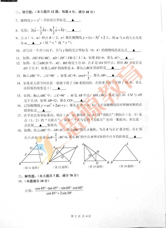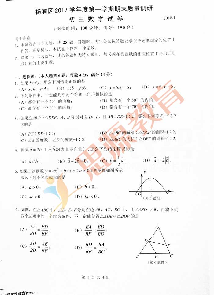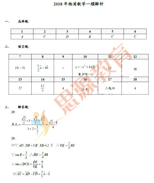 2018上海杨浦区一??伎?,思源教育小编第一时间整理了数学考卷的真题和答案解析,分享给大家。其他区的同学们可以参考杨浦区的考点和难度,最之后的冲刺复习。