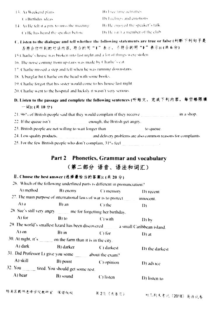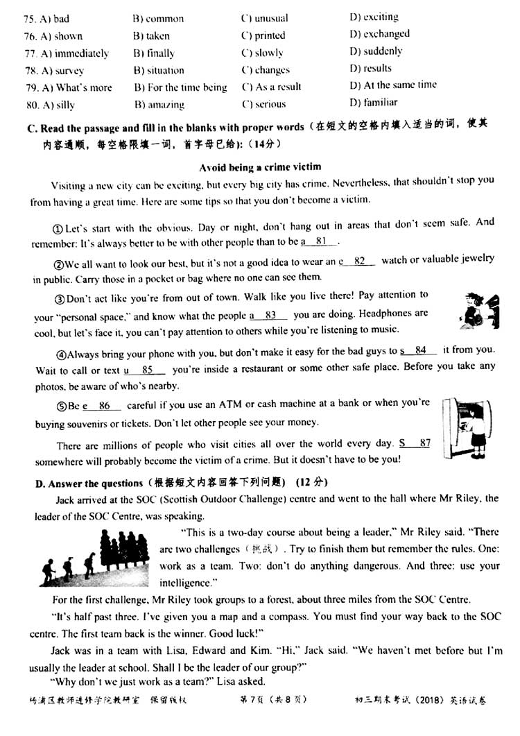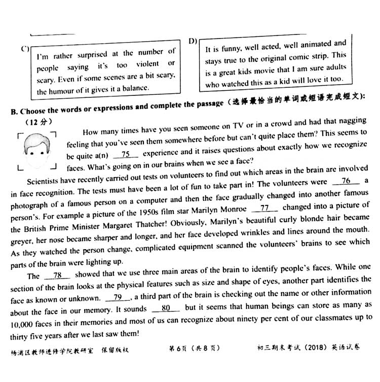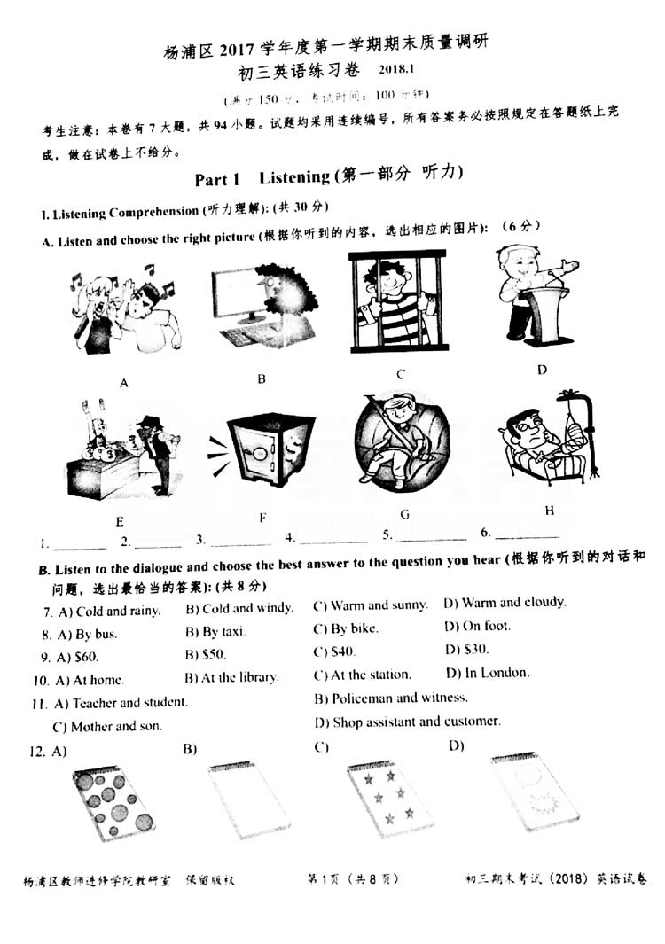 2018上海杨浦区一??伎?,思源教育小编第一时间整理了英语考卷的真题和答案解析,分享给大家。其他区的同学们可以参考杨浦区的考点和难度,最之后的冲刺复习。