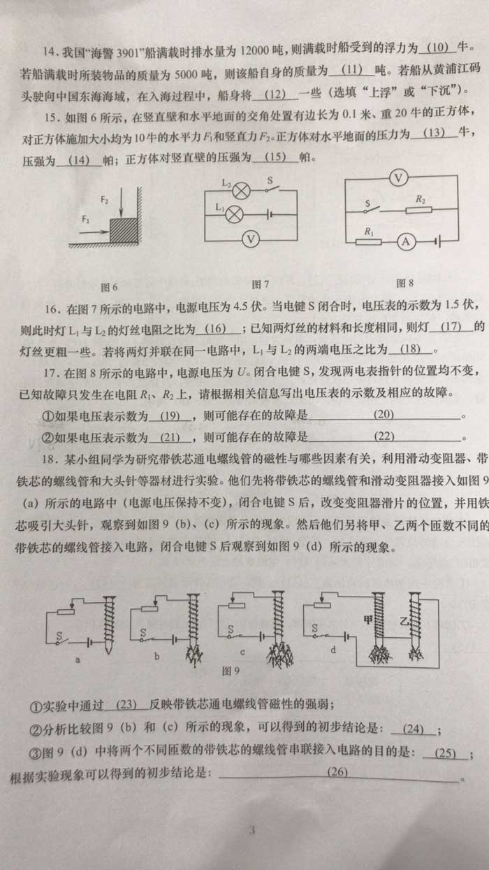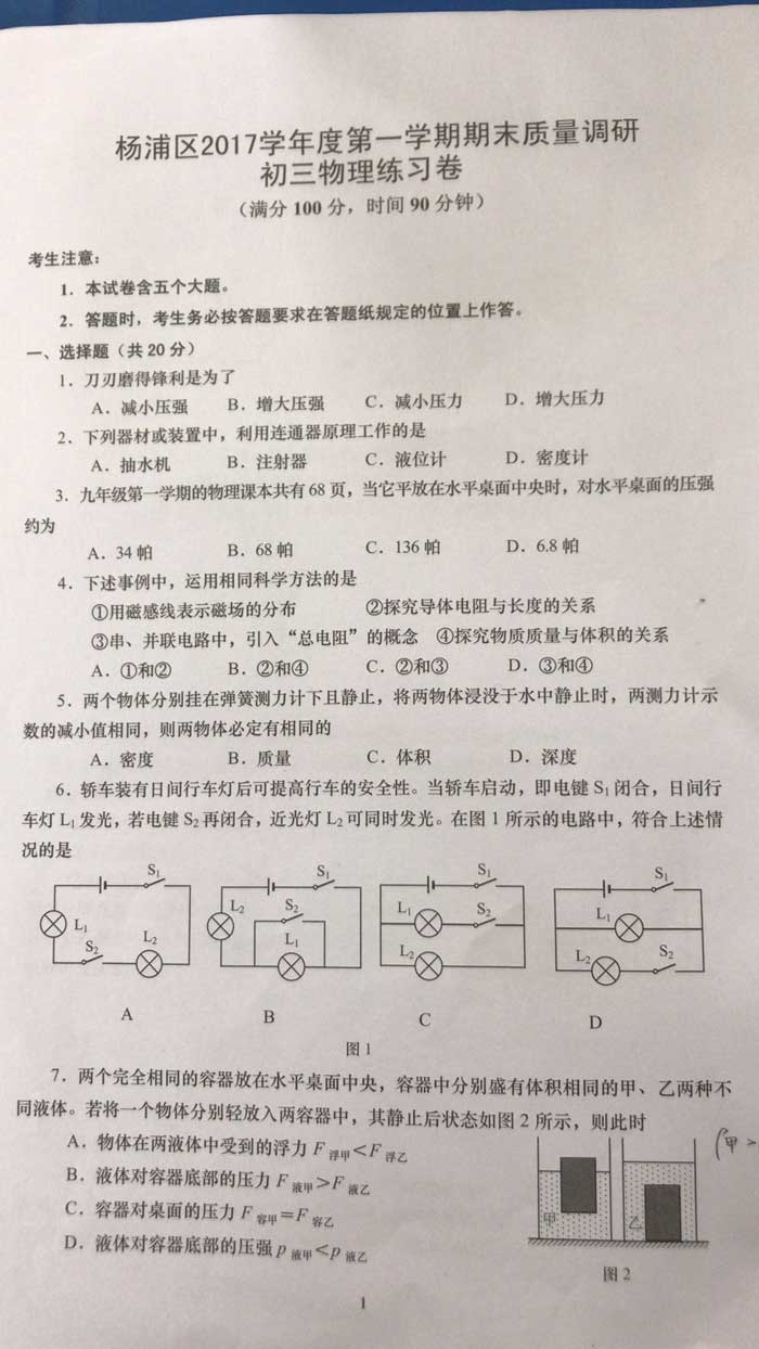 2018上海杨浦区一??伎?,思源教育小编第一时间整理了物理考卷的真题和答案解析,分享给大家。其他区的同学们可以参考杨浦区的考点和难度,最之后的冲刺复习。