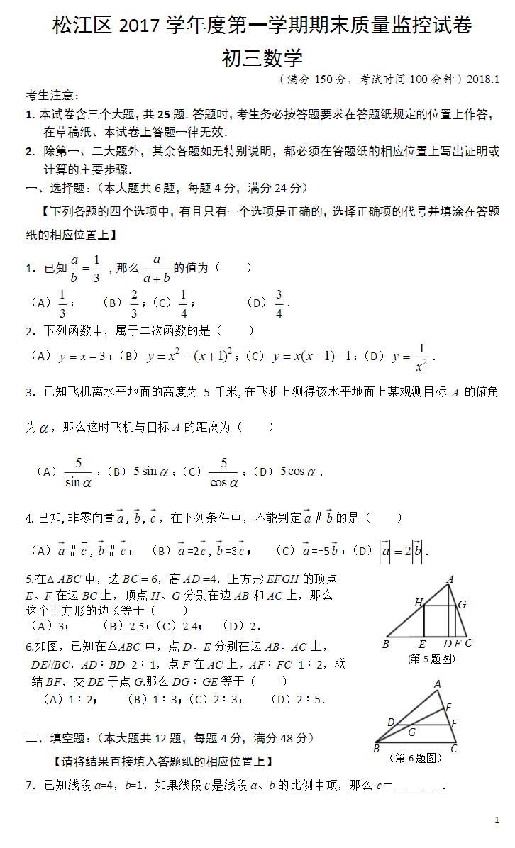 2018上海松江区一模考开考,思源教育小编第一时间整理了数学考卷的真题和答案解析,分享给大家。其他区的同学们可以参考松江区的考点和难度,做最后的冲刺复习。
