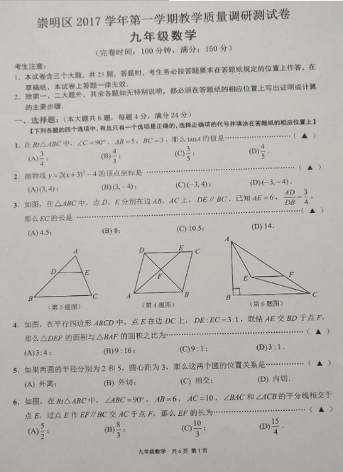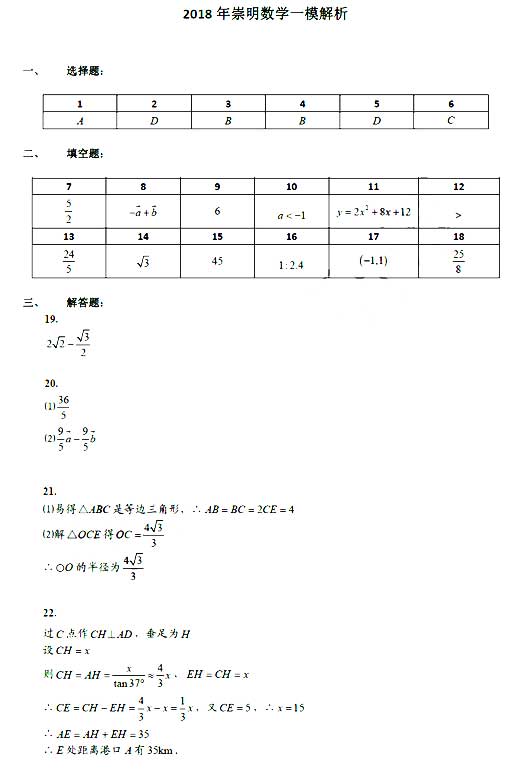 2018上海崇明区一??伎?,思源教育小编第一时间整理了数学考卷的真题和答案解析,分享给大家。其他区的同学们可以参考崇明区的考点和难度,做最后的冲刺复习。
