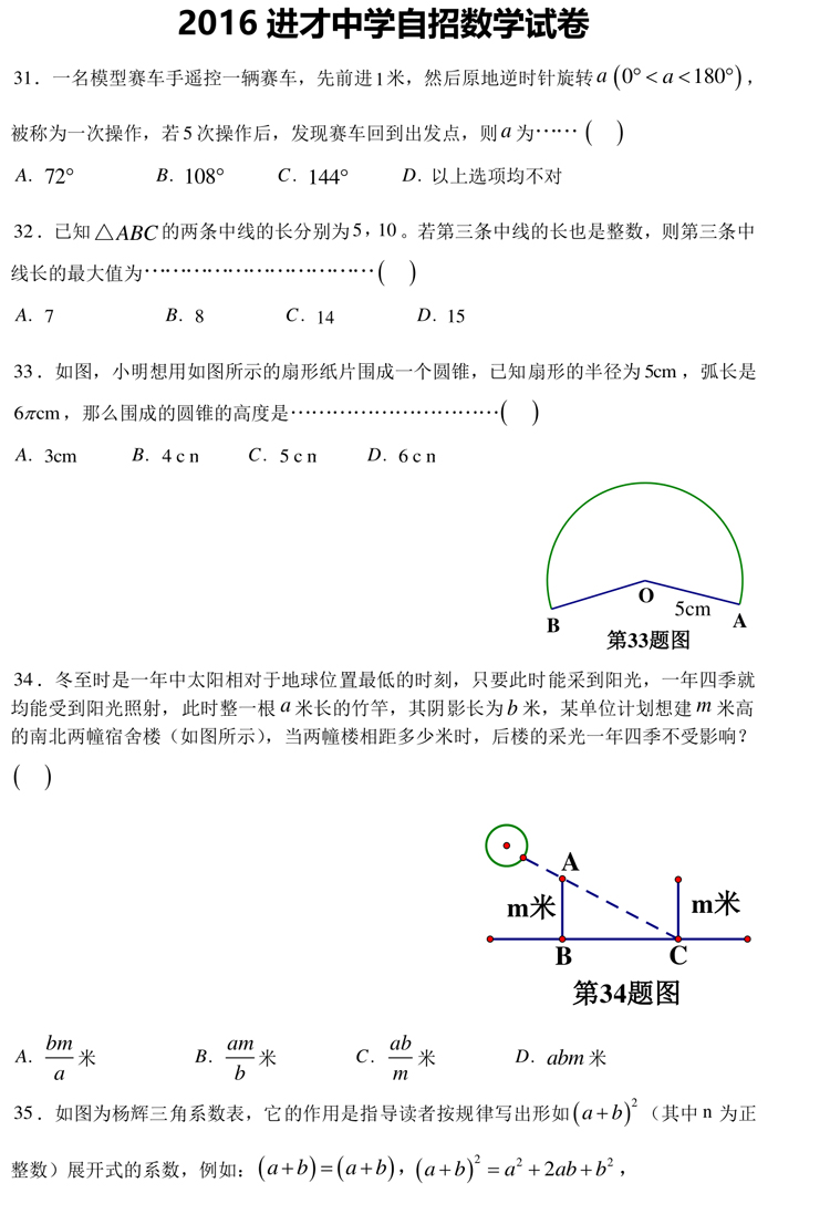 四大名校八大金刚,作为上海最好的高中学校。一直备受追捧和关注。一模考后,很多“牛蛙”就将全力冲刺自招考,思源教育小编整理近几年名校的自招考真题,希望能够对大家的复习有所帮助,今天给大家带来的是2016进才中学自招考数学卷试题与解析。