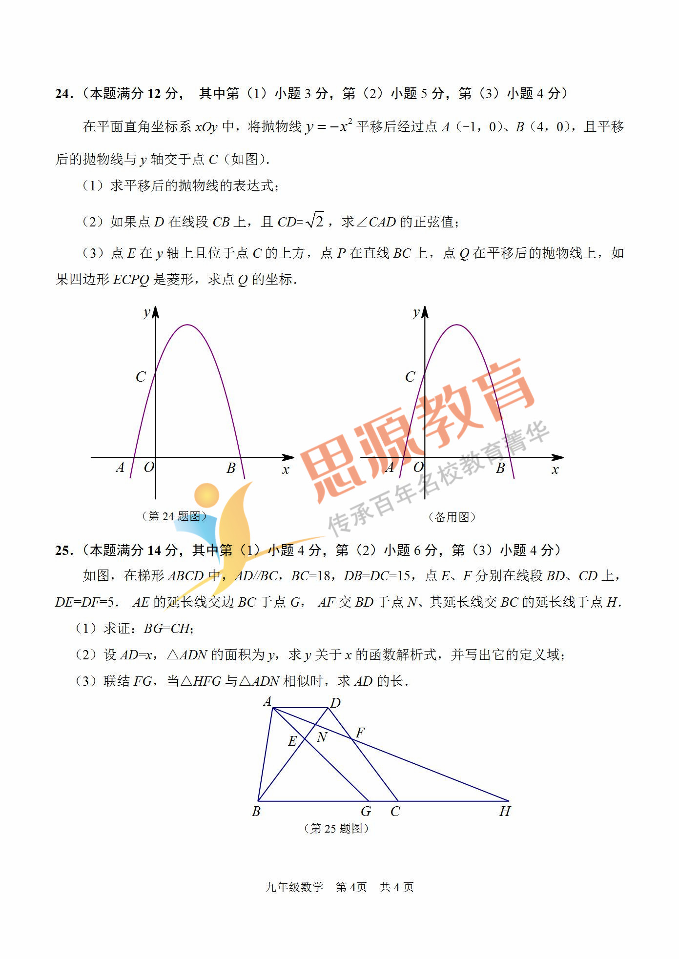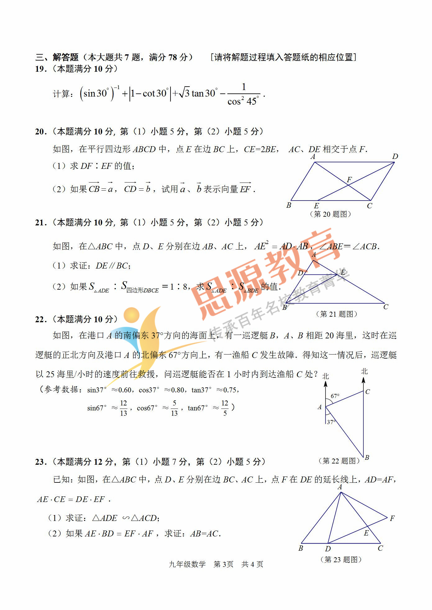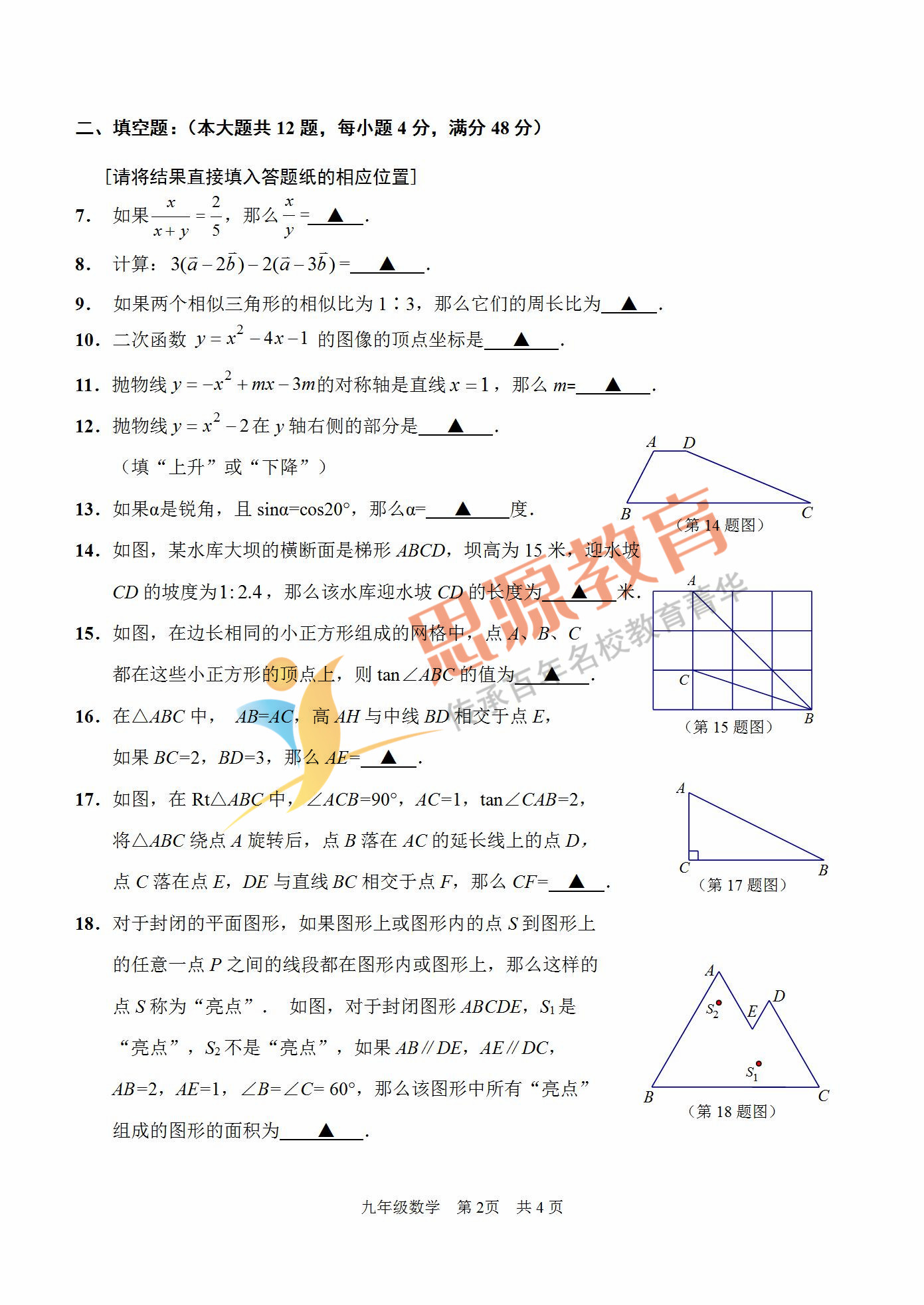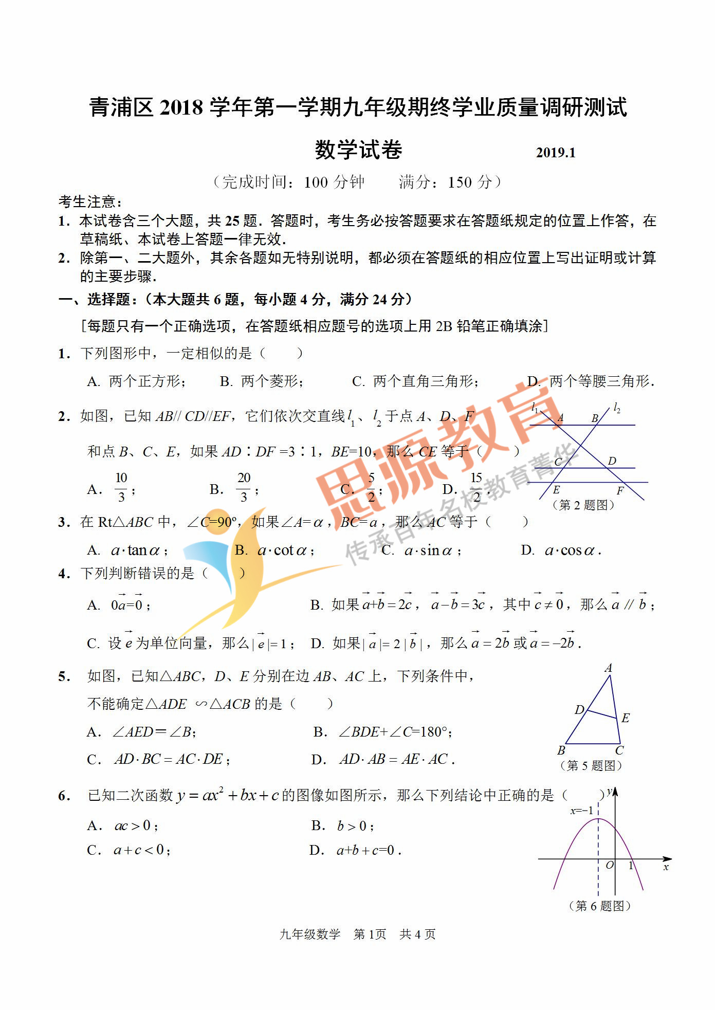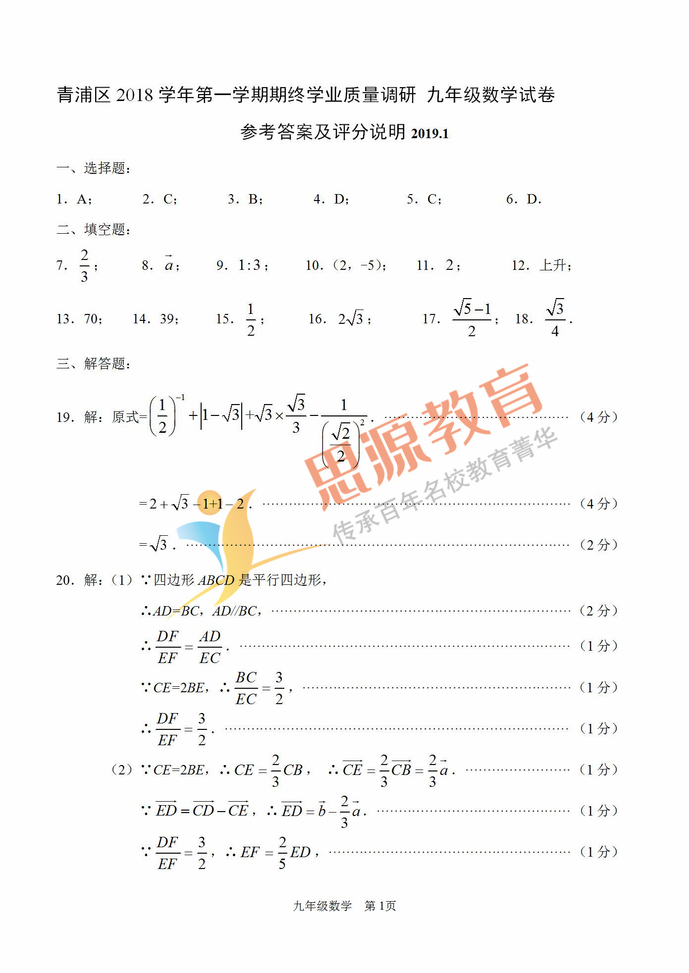 主页 > 中学-中高考 > 初中试题 > 2019届初三一模青浦区数学卷解析